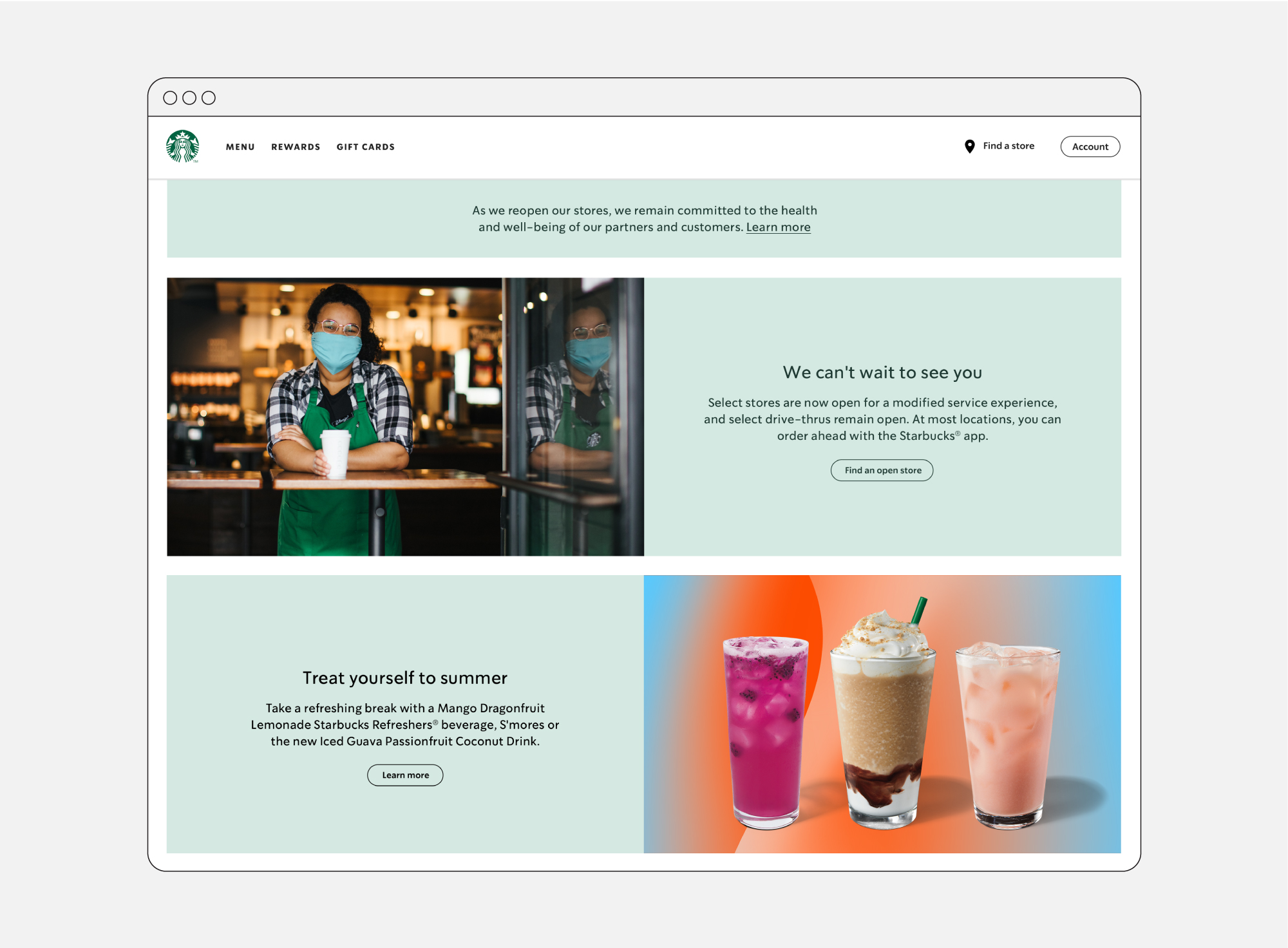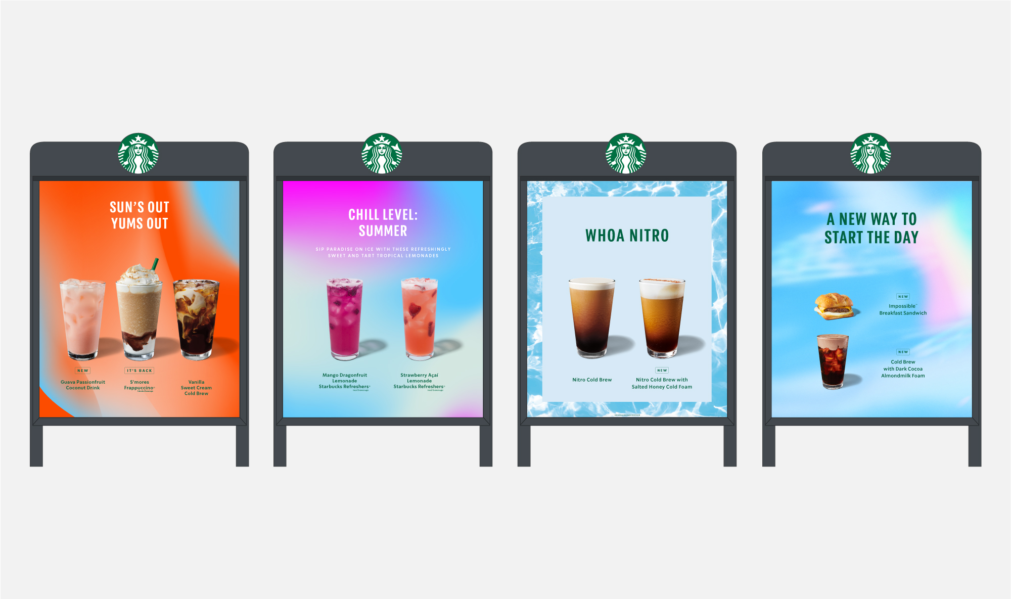 Summer is the longest and most energetic season at Starbucks. For Summer 2020 our team developed a brand-forward, colorful campaign, tapping into small moments of happiness and inviting customers to opt into the season with Starbucks.